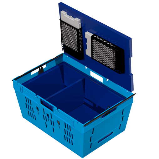 Ja. Der Deckel kann mit gefrorenen oder gekühlten Kühlakkus bestückt und direkt im Gefrierschrank gelagert werden. So ist das System sofort einsatzbereit und spart Handling-Zeit in Fulfillment-Zentren und Lagerhäusern.